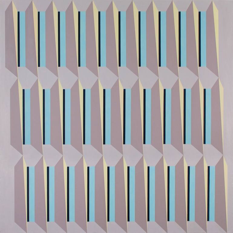 Minimalist geometric painting inspired by classical architecture. Depicting angular pillars repeated and simplified in an abstract way. Using colour divisively to create harmony between the shapes and portray light whilst maintaining a sense of weight and monumentalism.