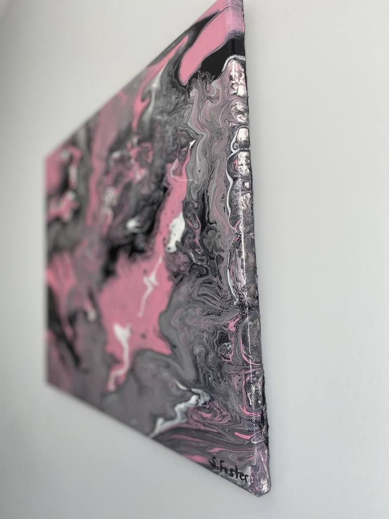 A beautiful pink, black, silver and white swirl of my imagination. I love fluid art so I just picked some of my fav colors and let gravity take over! It also has been finished with a professional gloss varnish, to protect the painting.