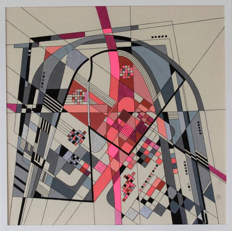 As a visual artist, I use threads, acrylic and gouache paint to create pieces of abstract, geometric, and architectural designs. Stitching resembles in many ways brush strokes however, hand embroidery with its web of colored threads laid to form positive and negative spaces adds extra dimension to t...