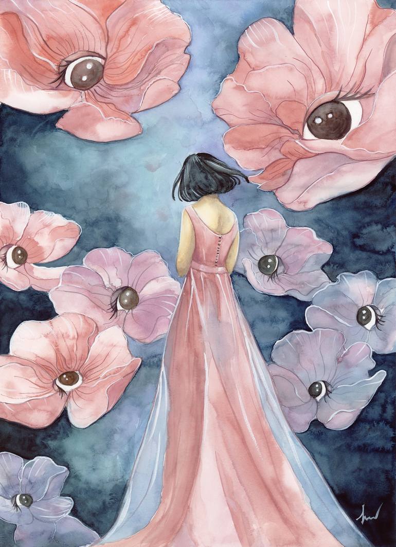 đź©· Blush pinks and midnight blues merge in dreamlike scene of *Pink Reverie*, evoking quiet introspection amidst an atmosphere of deep mystery. This piece invites viewers to embrace the beauty of quiet observation while reflecting on how we can shield our inner selves from the dark, alluring pull of...