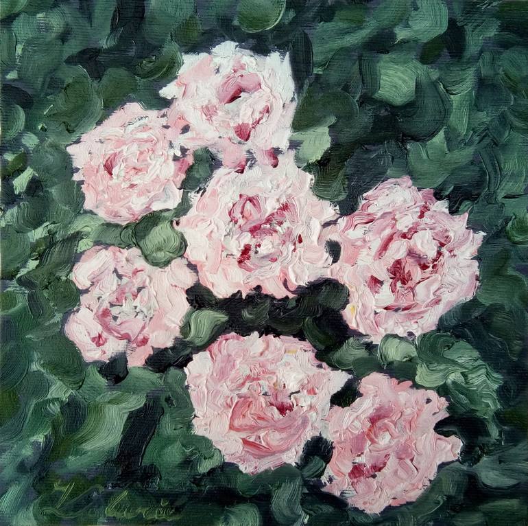 Painting is oil on canvas, canvas is on hard wood.The painting shows pink roses.