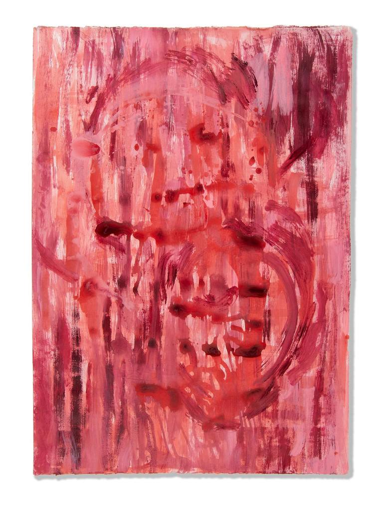A gentle gestural abstraction in warm pinks, lavenders, and reds. I am expressing an interior experience of meditation, through a feminine lens.