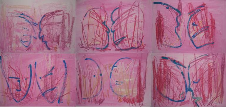 Communication often fails Series of six seperated panels. Watercolour and wax crayon on paper. Couple disputing and finally reconciling. The six pictures tell a story. It is a process - two people have a debate about something - and it is always good to make up at the end of the day. The six picture...