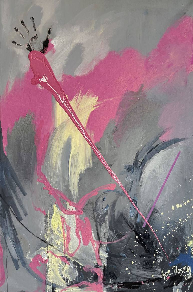 The original abstract oil pink painting "Untitled 1" by Austrian- Russian painter Agni Dasein, 2022. Size:120x80x2 cm. Soft vibes serendipity and calm. What will you find here the horse that ride away or rose from your loved one? Perfectly complements stylish or simple interior. Beauty in details...
