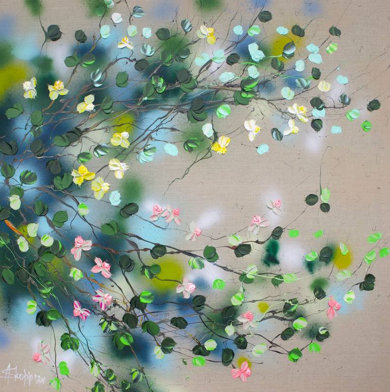 Statement: “I feel my mission is to create art works from inner silence.” - Anastassia Skopp Born in Russia, Anastassia Skopp was raised by her Mom in the city of Saransk where she studied art for 7 years (1985-1992) at the Mordovian Art College named after P.F. Ryabov for children and young people. There she learned about drawing, composition, art of painting and sculpturing from well-known artists and painters (including P.F. Ryabov). Welcome to Anastassia's world of floral paintings, where art and spirituality converge to create a unique and transformative experience. As an artist, she has devoted years to studying spiritual books by Eckhart Tolle, and her art is a reflection of this profound exploration. According to Tolle, flowers serve as messengers from another world, bridging the divide between the physical and the formless. They emit a subtle fragrance that not only pleases the senses but also carries an aroma from the spiritual realm. Anastassia's paintings extend an invitation to immerse oneself in this realm of meditative floral enchantment, where impasto colors and textures intertwine to foster a sense of tranquility and serenity. Her technique draws inspiration from abstract expressionism and modern art, employing a distinctive combination of mixed media that includes undiluted acrylic paint, ink, gel medium, and structure paste. Through these mediums, she crafts three-dimensional flowers and surfaces. She particularly delights in creating impasto abstract pieces, utilizing spatulas, tubes, and fruit knives to achieve a tactile and textured effect. Anastassia's mission is to create art that emanates from inner silence, transmitting this state of being to the viewer. Each painting becomes an oasis of focus and tranquility amidst the tumultuousness of everyday life, offering a moment of stillness and serving as a reminder of the beauty and interconnectedness of all things. Her works have been collected by individuals and art enthusiasts worldwide, spanning from Japan to the USA and Canada.