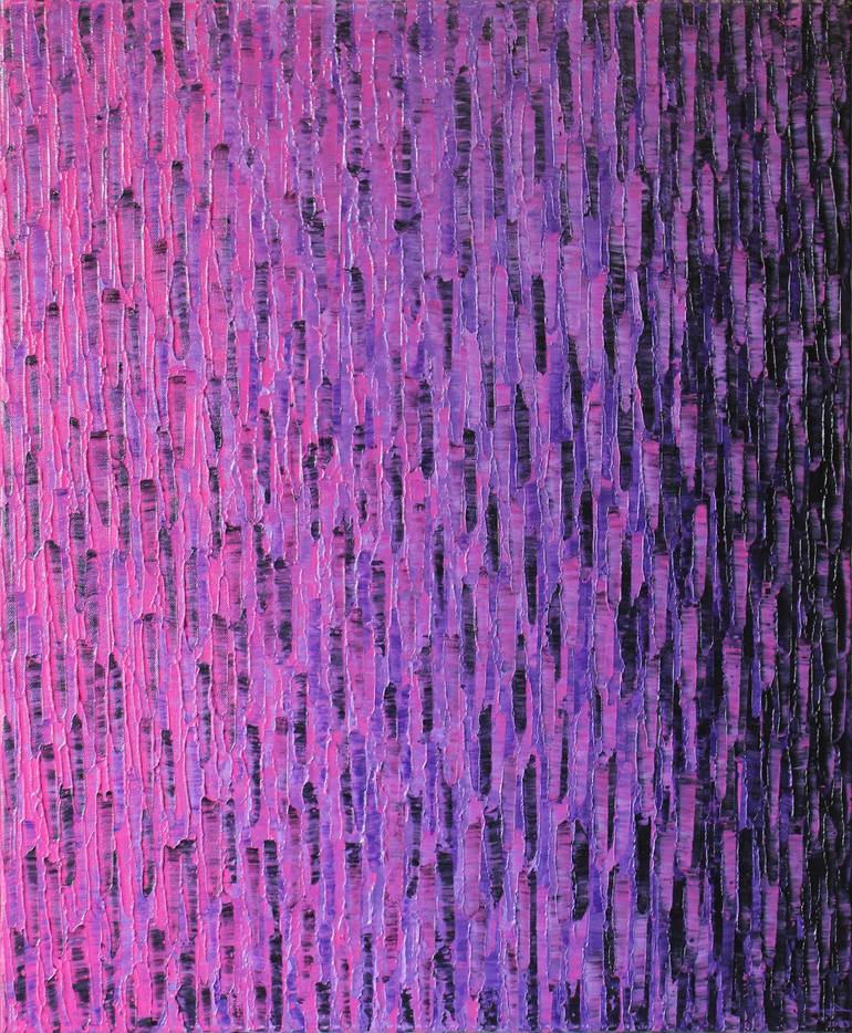 Contemporary painting | Pink purple color fade This contemporary work was created using a spatula to paint with acrylic paint, on a wooden frame covered with 100% cotton canvas. The edges of the canvas have been painted with black acrylic paint for a neat finish. In order to protect and give a shiny...