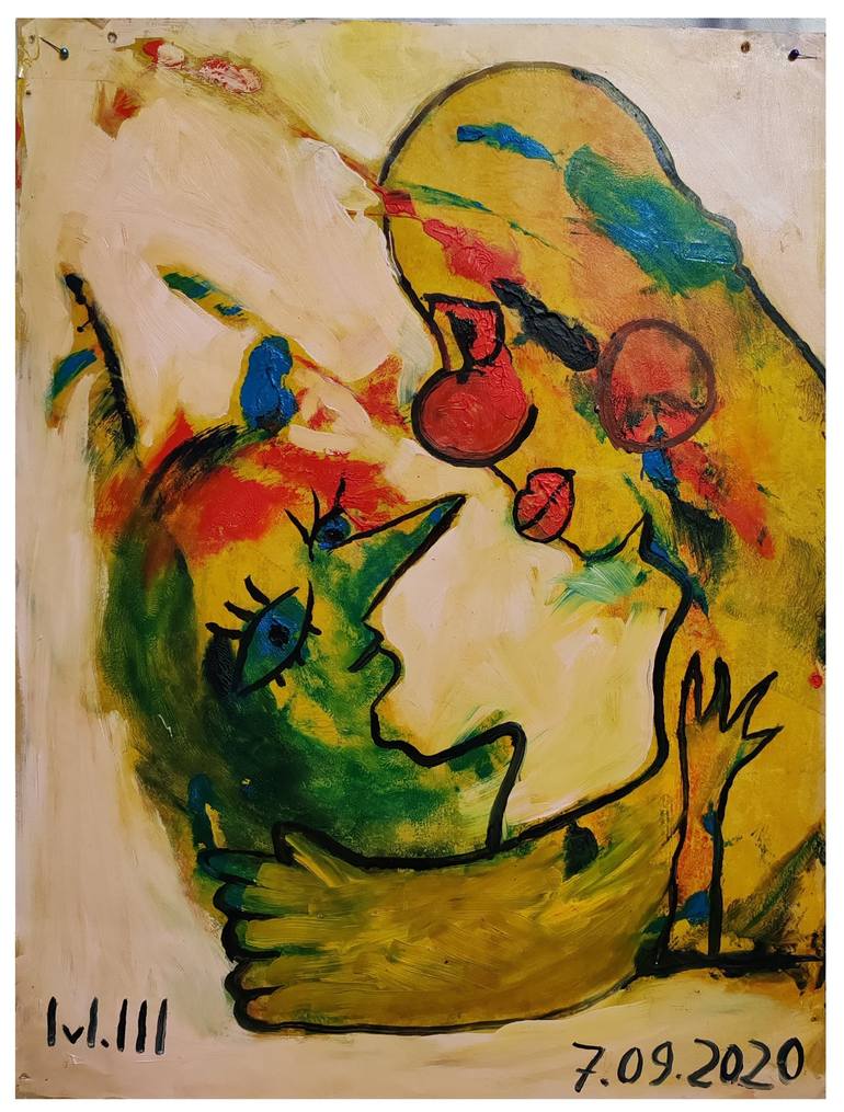 In my childhood I once saw a clown so close. The clown hugged me. It was a female clown. I was four years old. When I had already painted this picture I remembered that one moment.