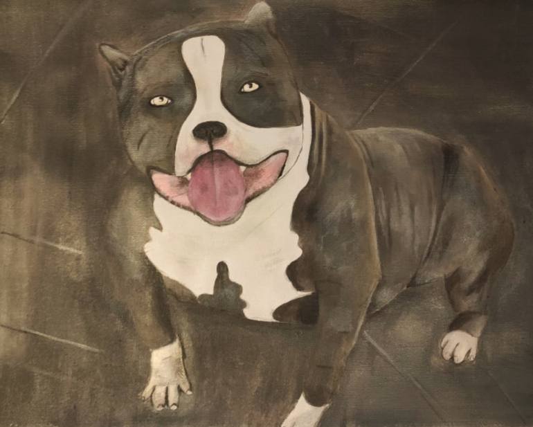 Painting of a pet pit bull. Inspired by the fascination of the animal.