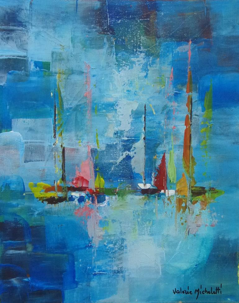 the sea and the sky mix together in blue color the sails of the boats bring new colors
