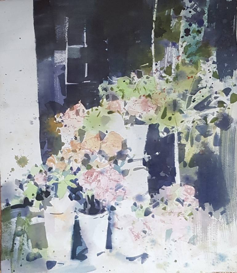 In this watercolor game with the suggestion of the chiaroscuros. I want to recreate the freshness of an Andalusian patio. The paper is Arches.