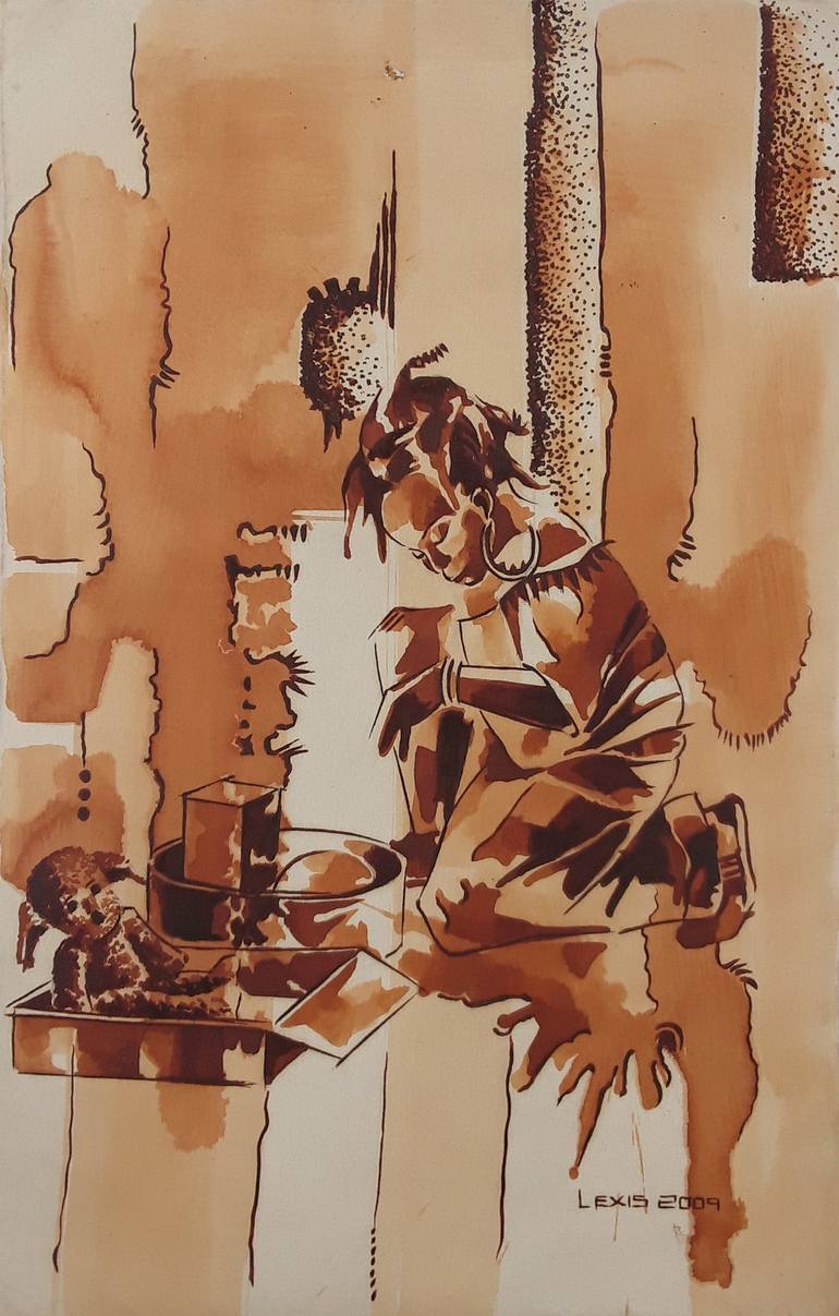 "I am Alex Mensah (Lexis),an artist who is versatile in color schemes and very meticulous in the execution of his works "My interest for art was built up while growing up as a child. Seeing my elder brother's drawings and sketches amused me so much that I picked pieces of papers and tried hard to copy some of the compositions that fascinated me most as I wondered how a three dimensional form could be solidly and so realistically represented on a common flat surface. This awesome feeling triggered off my curious instincts as I busied myself with lots of experimental sketches and drawings, trying to grasp the concept of realism especially with still life objects. That is how something which was to be my profession all began. "I love to see the interplay of colors and the aesthetic appeal that comes with it. I enjoy holding the brush / palette knife and expressing my inner most thoughts and feelings through colorful strokes and textures. I am versatile with the medium of expression however I normally use acrylic paint or ‘aciduro’ (a local pigment) on canvas. I am a product of Kwame Nkrumah University of Science and technology (KNUST), graduating with a degree in Art specifically painting.I had my primary and secondary education at Cambridge International School and Prempeh College respectively, all in Kumasi, pursuing art on all levels "My themes span across still life, abstract and realistic representations. That is to say, I paint on any kind of theme which appeals to me regardless of the challenges involved. My philosophy is to paint on whatever thing that motivates me. However, most of my works are based on landscape and musical compositions. Being musically inclined – a guitarist, I use color to depict the various sol-fa's and pitches, and then texture to control the tempo of the song I am painting. I also enjoy the use of vibrant colors with bold textures which always bring life in my works. The favorite thing about my work is its unique nature. Each work has its own unique taste of appeal and sometimes the way I pour out my heart unto the canvas even makes it difficult to let go… i.e., sell it. I get my inspiration from nature. Music also provides a good atmosphere to move with the flow. "I have been in a few exhibitions including a group one at the Alliance Francais in Accra and at the exhibition hall of the Center for National Culture. In Accra I exhibit at Artist Alliance Gallery, The Loom Art Gallery, Berj Art Gallery and Golden Tulip.