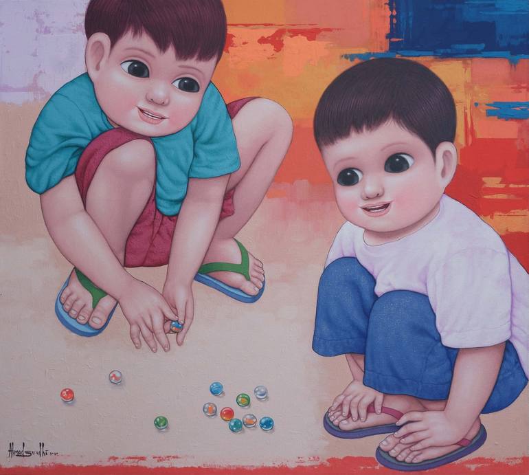 Ahmad Su’udhi was born in Temanggung, Central Java, on 17 April 1958. In 1986 he studied Visual Communication in ASRI Yogyakarta. Ever since he started his study in ASRI, he already got his scholarship of 'Talent and Best Achievement', followed by few others 'Recognition of Excellence' in Graphic Design. 1997 - 1998 Throughout these years, he wrote children serial books and also became illustrator of children story books which were published in several media in Jakarta. This period of time gave him such a strong personality that when he became a painter, his works were much inspired by his experience around children. His early works mainly featured children activity, their daily life, and their happiness among their family and friends. Ahmad Su’udhi portrayed the children with a bright face, wide eyes, cute and innocence expression. His recent works were the babies series. The sense of innocence of the babies was connected to the modern way of living.