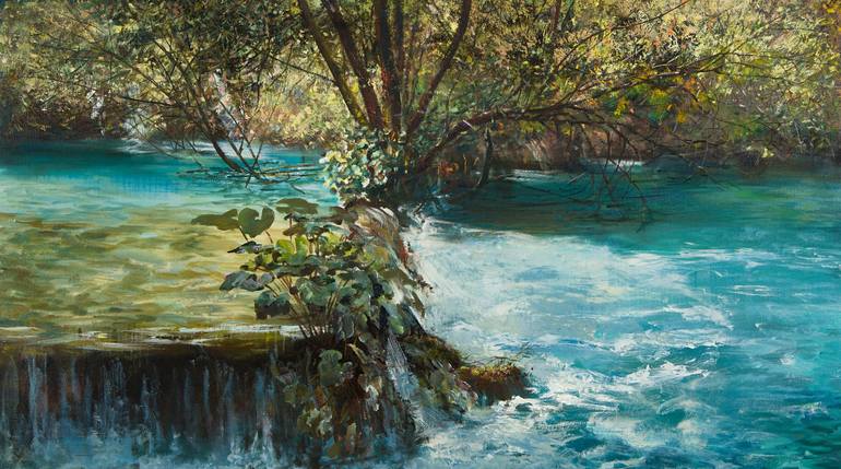 Title: Plitvice Lake Original Title: Плитвицкое озеро Object type: painting Artist: Anatoly Belyavsky Creation date: 2013 Medium: oil on canvas Dimensions: h 67 cm × w 119 cm × d 3 cm Copyright: Anatoly Belyavsky
