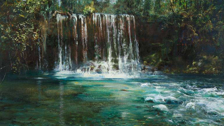 Title: Plitvice Melody Original Title: Плитвицкая мелодия Object type: painting Artist: Anatoly Belyavsky Creation date: 2013 Medium: oil on canvas Dimensions: h 67,7 cm × w 120 cm × d 3 cm Copyright: Anatoly Belyavsky