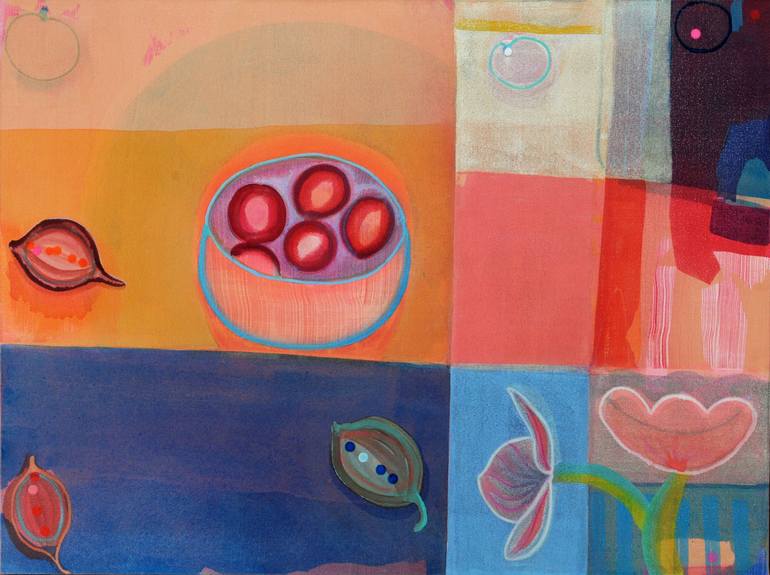 B.1971 Nairobi, Kenya. Ella is a painter who investigates her own experiences of the world. Her semi-abstract paintings incorporate a love of colour and pattern, absorbing and interpreting her surroundings she treads a fine line between representation and abstraction with the aim of sparking the viewer’s curiosity and igniting their imagination. Ella’s new paintings centre around the home, personal connections to treasured objects and interior spaces: A kind of magic realism with heightened colours and shapes which blur the boundaries between what is real and what is fiction. ‘Sometimes I’m remembering the moonlight pouring over the kitchen table in the early hours, its unworldly light changing the colours of everything in the room. Sometimes I’m sensing into the joy of connecting with people and sometimes a painting is born out of almost complete fiction, it becomes itself without too much thinking, it just is.’ Ella has exhibited widely in the U.K. Her work is held by collectors in the U.S. Canada, Australia, the Middle East, Europe and in the U.K.