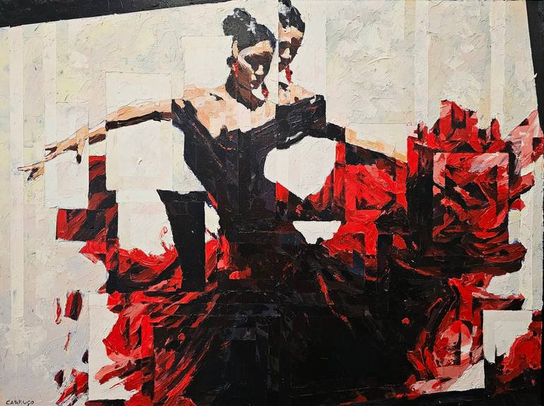 As an artist, I sought to capture the essence of Spanish dance in "Poetry in Motion." Inspired by the gracefulness of the Sevillana, I aimed to convey her elegance and passion in every brushstroke. The red and black dress represents her burning energy, while the ponytail frames her graceful movement...