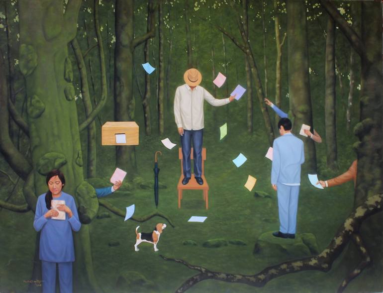 The forest is a mysterious place that contains more than simply a physical environment. In the forest, we feel the wind, the sound of insects buzzing, leaves rubbing against one another, and the silence as the life of poetry, where people visit their minds. Material : Canvas Medium : Oil Size : 1...