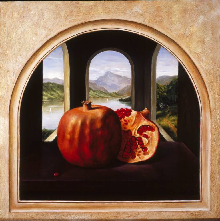 one of a series of paintings where I was exploring combining several traditional styles, Trompe-l'œil, botanical illustration, interior, and landscape.