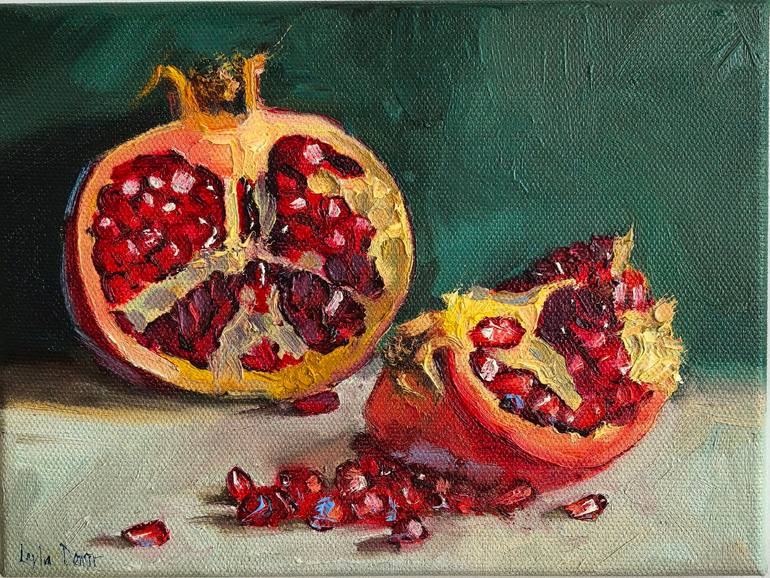 Pomegranate fluit on emerald green background still life original canvas oil painting, the fruit picture light and fresh. Is a perfect decoration for your home! Ideal for a bright interior, such as a bedroom or living room. The size is 9x7 inch. A nice gift for yourself and your loved ones! Painting...