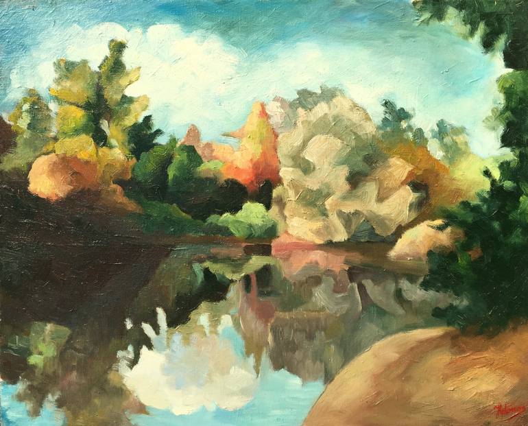 My long walks along the pond's side inspired this work. And I hope its stillness and mirrorring effect will inspire a quiet moment of soul searching and finding of the inner balance!