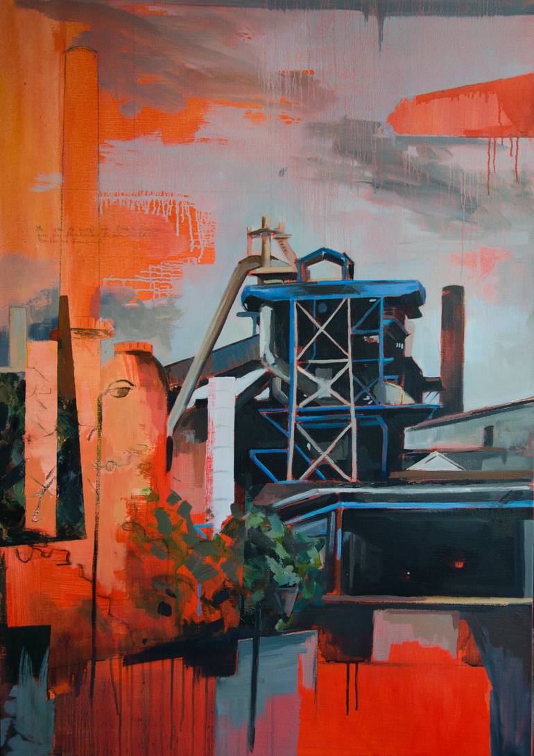 In his war diary, my grandfather recounts that he went through Pont à Mousson to go to Woëvre's front. The emblem of this city is the St Gobain metallurgical factory. Having always been attracted by industrial buildings, I wanted to paint this factory to testify of the passage of my grandfather in t...