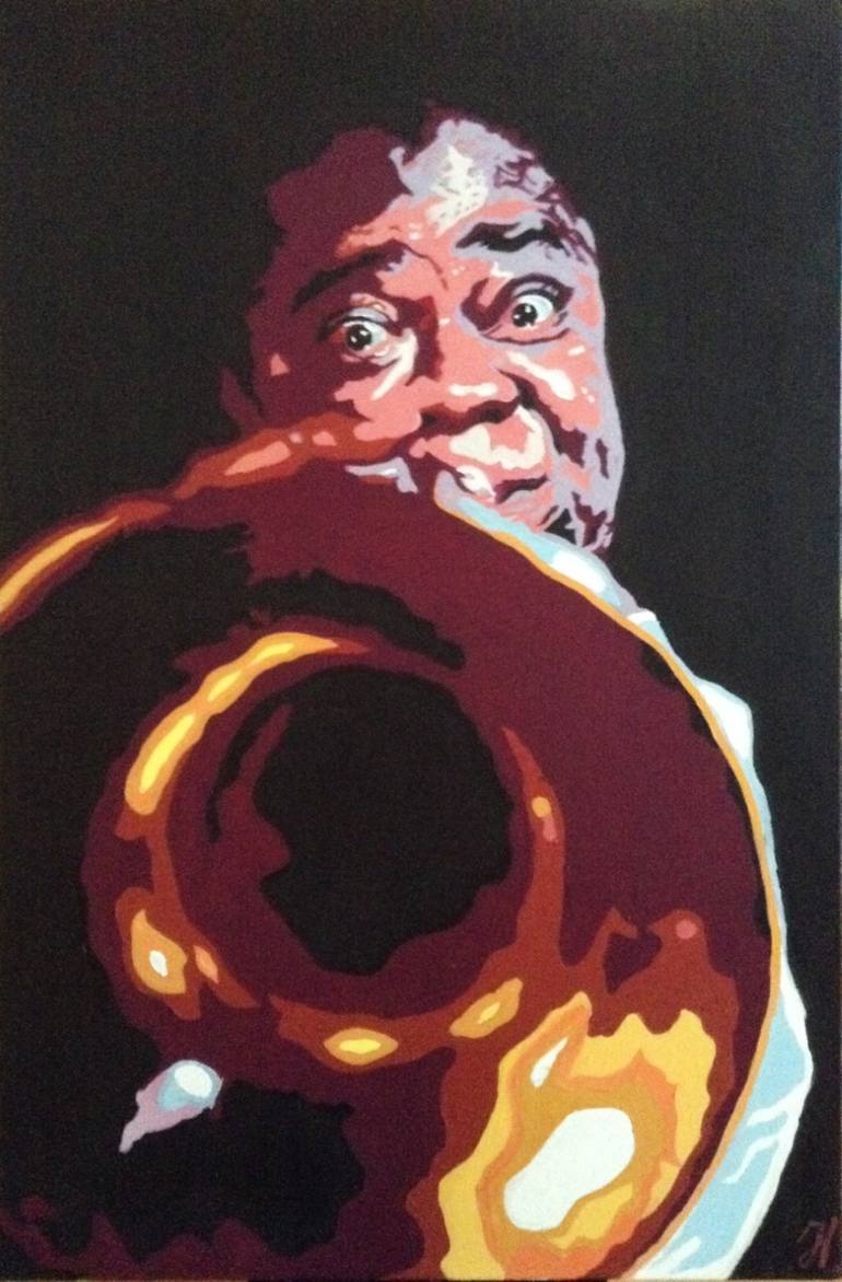 I´m making a large serie of pop art painting of famous and impressive Jazzmusicians. I allready make portraits of Chet Baker, Art Blakey, Thelinous Monk, Miles Davis, Charles Mingus., John Coltrane , Aretha Franklin, Dizzy Gillespie., Toots Tielemans,Oscar Peterson and Count basie and now Louis Ams...