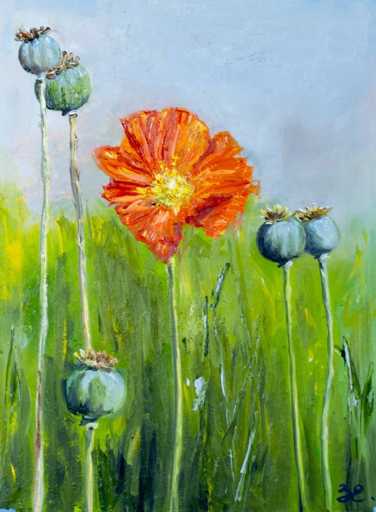Poppies is an interior painting created to change the mood of any room with their bright colors, sparkling surface from any light source. Oil painting allowed to convey the complex colorful palette of shades of this picturesque Poppy flower. The picture is not varnished because it was created a few ...