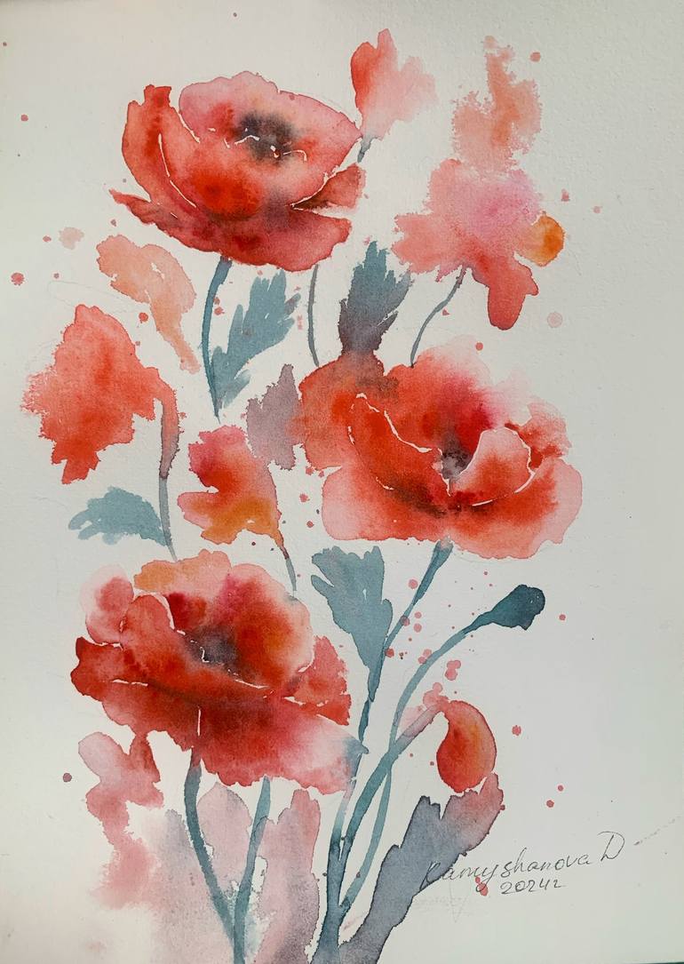 "Poppies" captures the delicate beauty of a composition of vibrant poppy flowers, inspired by their bright and tender petals. This artwork exudes the essence of these captivating blooms through its use of rich shades of red, conveying both their intensity and delicacy. Executed on high-quality 100%...