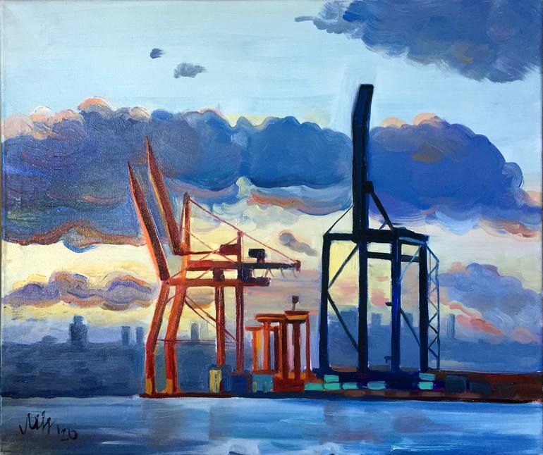 While I was traveling I often took pictures of the port of Haydarpasa, Istanbul, and many other ports. i liked the cranes, shipping containers, old ships. I especially liked the cranes, their monumental shapes and vibrant colours; they almost look like abstract forms. I decided to make this series d...