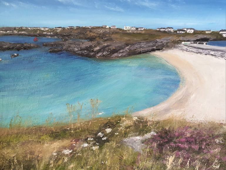 On a warm July day without a breath of wind sitting on a grassy outcrop looking towards Porth Castell