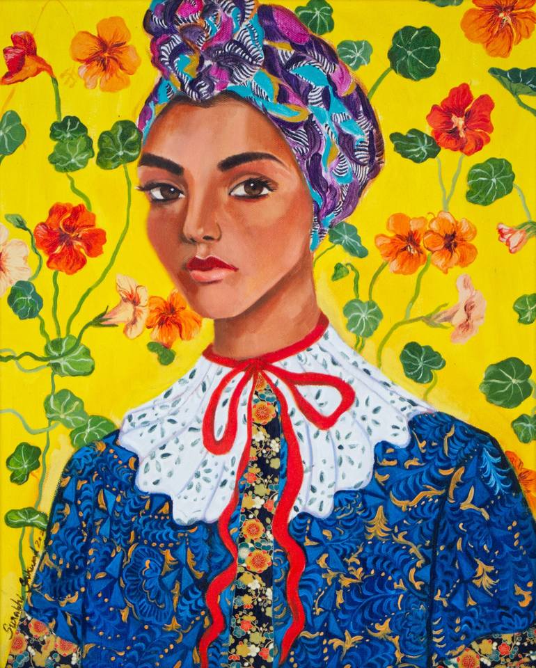 I’m Surabhi Gaikwad—potentially, the first female artist from Qatar to have her art on the Moon. ( Two of my artworks ( Me and my plants V and Dream I ) are selected to be apart of 'Polaris' a time capsule , A space programme launched by Nasa which launches creative works of artists to the moon in four time capsules). Although I was born and raised in Goa, India, I create my art in my studio in Doha. I’m currently based in Qatar. Oil on Canvas is my medium of choice because I love that it can be layered and mixed freely. The richness and the depth of oil colors informs and assists my style seamlessly. In my work I use bright and bold contrasting colors to form varied patterns juxtaposed with the fluidity of natural shapes found in foliage and flowers. Occasionally, I work with oil pastels and watercolors. India’s rich heritage of art, architecture and its diverse flora and fauna were my first inspirations. When I was Three years old, my mother bought a black board for me. I’m told I held a piece of chalk in each hand and drew two symmetrical ducks at the same time. Apart from impressionist masters, nature, textiles, patterns, fashion and anything that captivates my attention inspires me. Perhaps it’s the long periods of sequestering due to lockdowns that have resulted in lush, green houseplants appearing as my favorite accessory in my recent works. I find painting the flora and fauna around me with its myriad complexities of colors, shapes and sizes calming. With climate change on the horizon, I can't help but include plants and their stunning variety in my work. In my own way, I hope to preserve their existence on my canvases. ps- Dream I and Me and my plants V Selected on the Lunar codex ( POLARIS time capsule ) a program by NASA which launches creative works from artists to the moon in four time capsules. Currently an Artist in Residence with Fire Station - Qatar Museum sept 2024- june 2025.