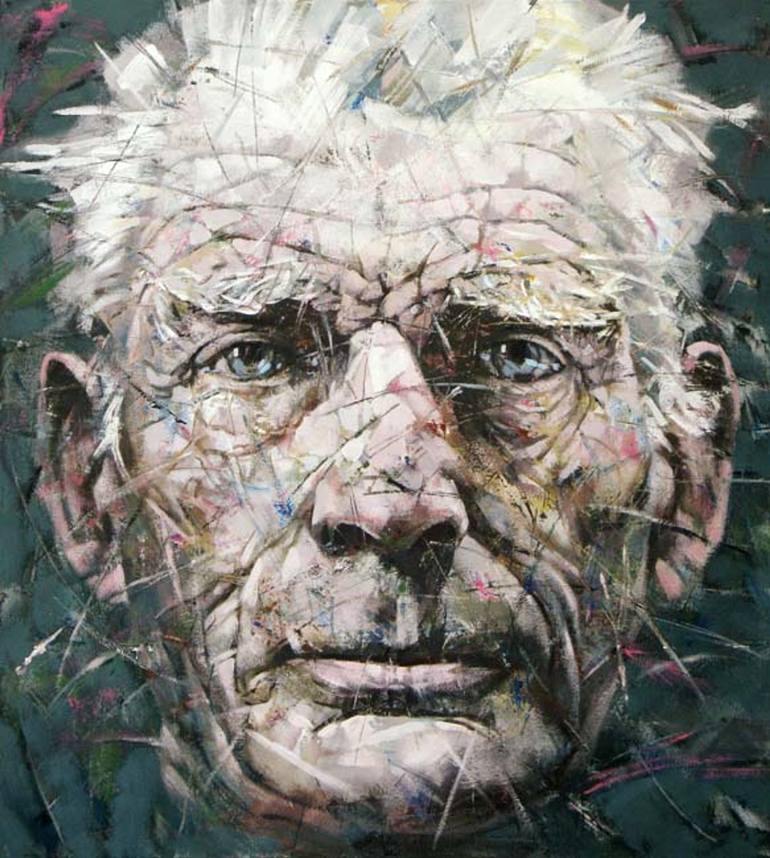 When I paint a portrait I create textures, I see to the coloration so that the paint would spread naturally and diversely thus producing an effect of lightness and breadth. I paint spots of color, lines and dots. I know not how to paint psychology, depth of an image or a life lived by someone. And yet in a surprising way this all appears by itself. A mystery inexplicable for me.