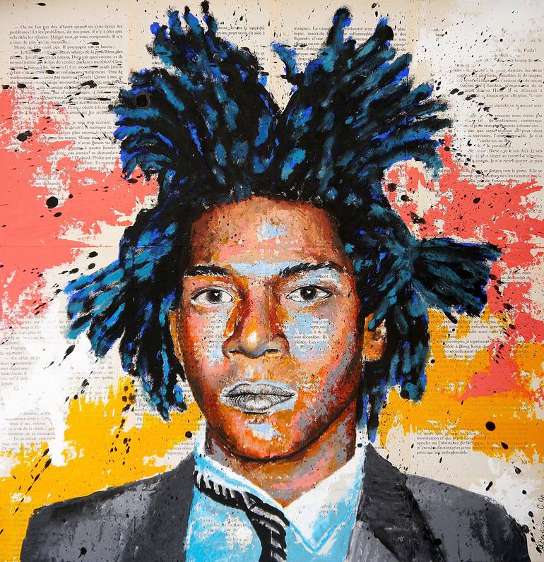 Portrait Basquiat Le Lion Portrait of the artist Jean Michel Basquiat. Technique: oil, acrylic, ink and collage on old book pages with wooden frame 55x55cm 21,6x21,6inch 》》R E A D Y -- T O -- H A N G《《 ■■ Interesting by this artwork, make an offer ■■ ❶ → Original signed work. Certificate of aut...