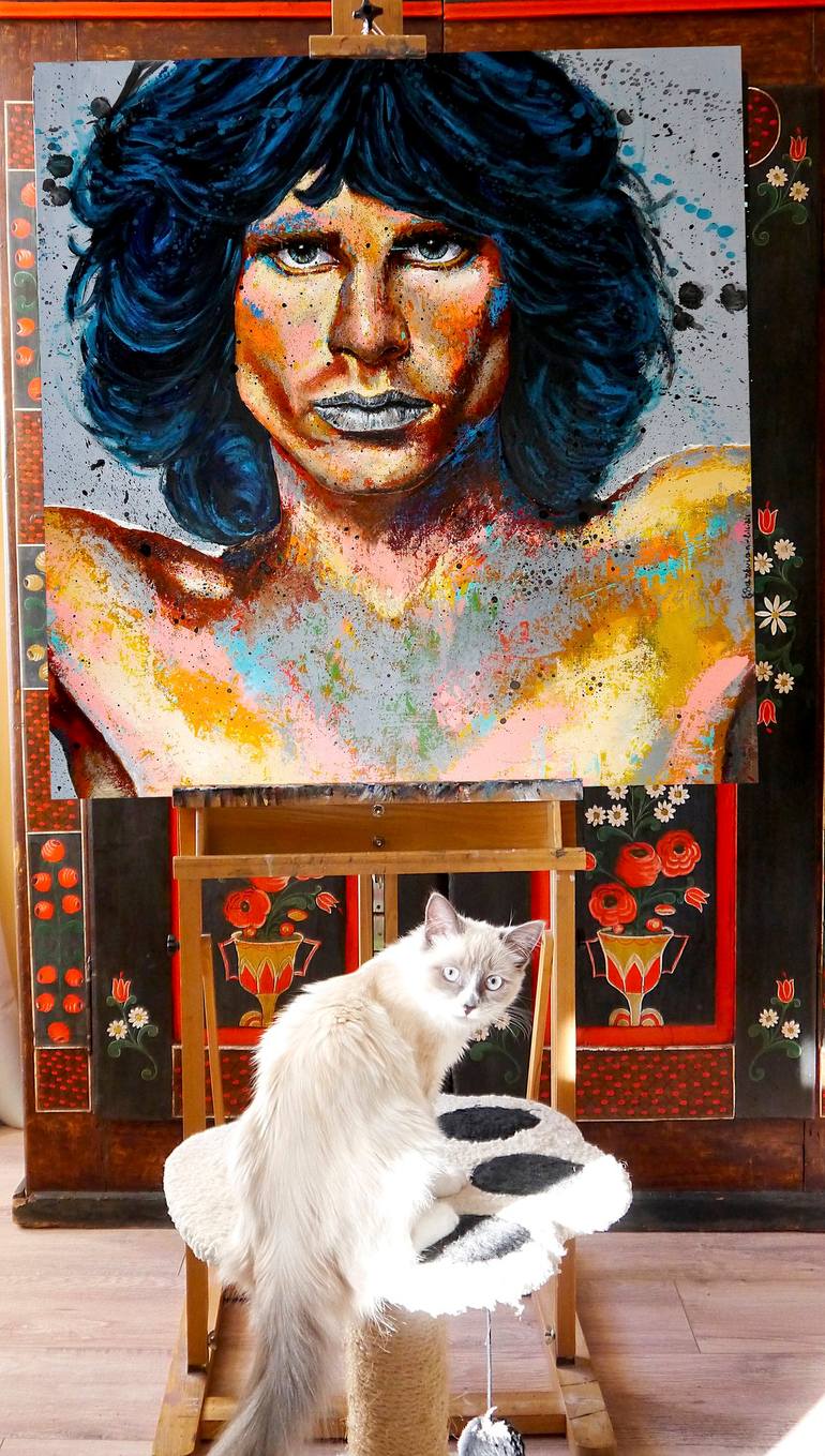 " Jim Morrison " This announce is for showing the size of the painting. If you are interesting by purchasing this painting, please go to the link below. Thus, I can sell some prints not the whole scene with my cat. Thanks for understanding Technique: Acrylics, oil painting, spray paint, China ink...