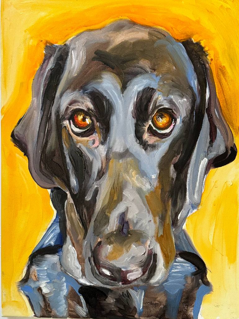 Painting of the handsome black Lab Smooshydor. I did this oil painting of Smooshydor, a black Labrador. He is depicted as a noble silhouette in brush strokes. He embodies loyalty and stands as a testament to the allure of love. He epitomizes steadfast friendship, an ever-near companion with a heart ...