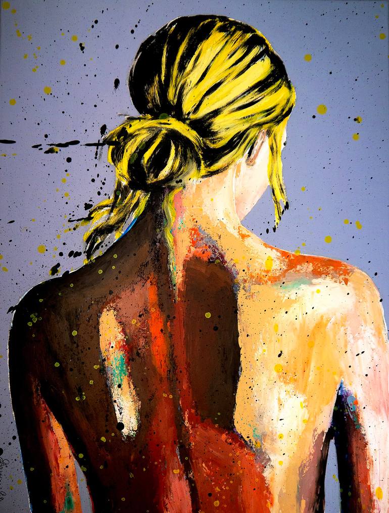 PS 238 Le temps des Jonquilles Portrait of a woman with back naked. Structural analysis: Such as Impressionist painting, the subject is firstly a study of light on human body, creating high contrasts on the skin. Technique: oil, acrylic, and ink on canvas 61x46cm (24,02x18,1 inch) 》》R E A D Y...