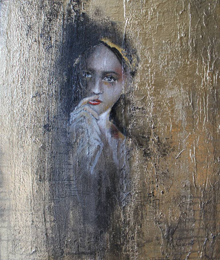 Professional artist, graduated with Maxima cum Laude in 1998 at the Academy of Fine Arts in Perugia, Italy. Rapresenting Galleries. Imago Gallery Perugia - Italy -Galeria Gaudì – Madrid, Spain Immagini Italart—Cremona, Italy Paintings are in private collections in Los Angeles,Paris,New York, Moscow, Washington,Canada, Florida, California London,Nice,St. Louis, Portugal, Cyprus, Italy and so on.. She perfectioned her style in England where she lived for 5 years. She hence began to exhibit in Italy and abroad in prestigious private galleries and public places, immediately receiving important awards and the consensus of specialized critics. In March 2014 she received an award from the Director of the Selenograd Gallery in Russia and began to exhibit and sell her works worldwide. In her paintings, the woman is the central subject: protagonist in scenes of love, awaiting, passion, pain, abandonment, desire, perversion. Donatella defines her works born out of chaos, confusion and characterized by strong lines, quick, unfinished, scratchy. The artist seeks to evoke emotions, narrate situations and tell life stories using different means of communication and extremely varied between them such as oil, ink, pigments, glass, cement and coffee. “Her women talk about love and men … first of all of her father who enrolled her at the Academy and now, although he is no longer, he fully participates in her creations being her memories fixed on canvas by the use of cement. Her father… a mason… a man… the first whom understood, her first true supporter. To him, the works letters of coffee are dedicated where the artist tells of herself and intimately opens to him. Her first exhibition dates back to 1997 and since then until today numerous personal and collective exhibitions have followed in galleries and museums in Italy and abroad