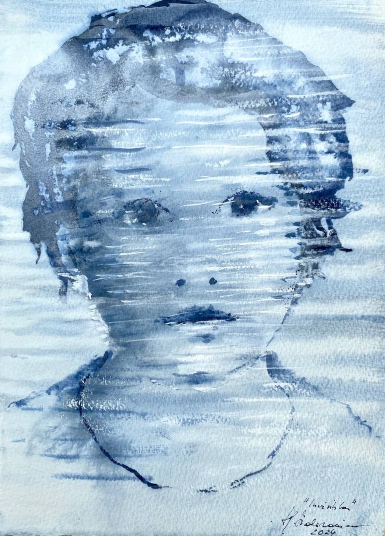 Dans cette œuvre, j'ai exploré la profondeur des émotions humaines à travers des nuances de bleu. L'utilisation de l'encre permet de capturer l'essence éphémère de l'âme, soulignant la vulnérabilité et la profondeur intrinsèque de l'être. La technique de superposition crée une dimension symbolique, ...