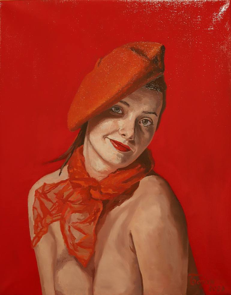 "Portrait in Red " oil on linen canvas 42cm x 53cm Traditional way of painting, premium oil paints, archival character