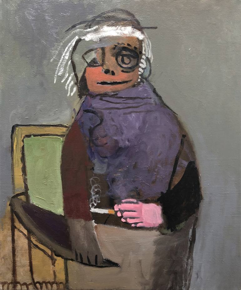Title: „Portrait mit Zigarette“. Signed on the backside. Size: 60 x 50 x 4 cm. (please note: dimensions are given in centimeters) Weight: ca. 1300 gr. Shipping weight ca. 6300 gr. Condition: perfect. Comes with photo-certification.