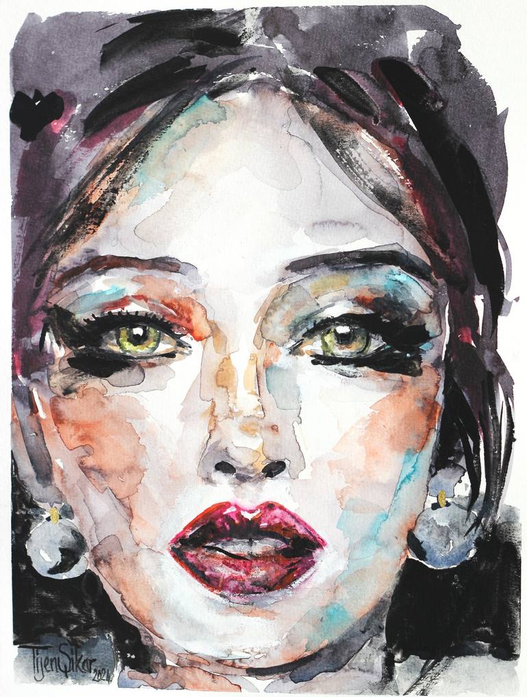 We seem to move forward by carrying the nostalgia of the past, sometimes we leave it on the canvas. I have shaped my works in several different series, flower abstractions, interpretations from nature, and recently, my series of women's portraits... For the portraits, I first make sketches with watercolor or ink, these works of mine are also included on my instagram page. Female portraits have always been my main interest, I am fascinated by the facial expressions and depth of gaze. My favorite subject is the female face. I attempt to create unique, non-existing persons. After choosing the patterned canvas cloths, I decide which canvas the portrait I have created will match with, that is, in which external environment the portrait can live, and I start working. I preserve the ones that will integrate with the meaning on the face and translate them into the language of the picture. My work is not about explanation and concept. It is a game to me about triggering the senses. The expressions in the portraits I paint are emotional, bold, shameless, sensual and condescending female faces. I start with no idea in general, but by looking at pictures that interest me and mixing them, a new image slowly evolves. I mix prints, clear gesso, oil paint, gel medium, glitter,puff paint, acrylic, ink and a math/gloss coating with most of these works. I create every painting by hand; they are originals.