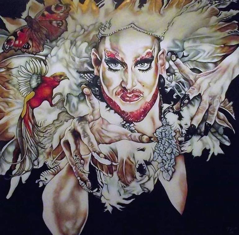 This eye catching visual display of glamour is a portrait of the International burlesque drag artist Jeff Van Phil. Van Phil retains a sense of film star beauty and is a pleasure to paint.