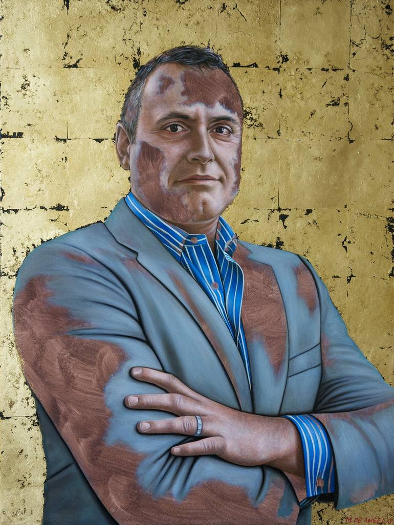 Maurizio De Angelis (born 1977) is a figurative painter specialising in closely observed portraiture. Since the start of his career some fifteen years ago, he has concentrated on painting in oil, firstly on canvas but more recently using a wooden support. He has worked on numerous private commissions both in Britain and abroad. A passionate and intuitive artist, he seeks to strip away the redundant and unnecessary in an attempt to reveal the essence of his subjects. To concentrate our eye on the sitters he places them before a neutral background - to dramatic effect - focusing on their distinguishing features, emphasising their clothes and accessories whilst discarding the superfluous. Set against spatially ambiguous surroundings, his figures are depicted with only the slightest facial expression, enabling the observer to interpret the character of the subject themselves and attribute their own mood to the portrait in a game of introspection; the painting thus becoming a mirror of the viewer's feelings. Alongside his career as a realist painter Maurizio has worked on a large and diverse number of illustrations, drawings and projects for the Media and Publishing industry. He specialises in scientific and technical illustrations and his work has appeared in films, commercials, TV programmes, books, dictionaries and magazines.