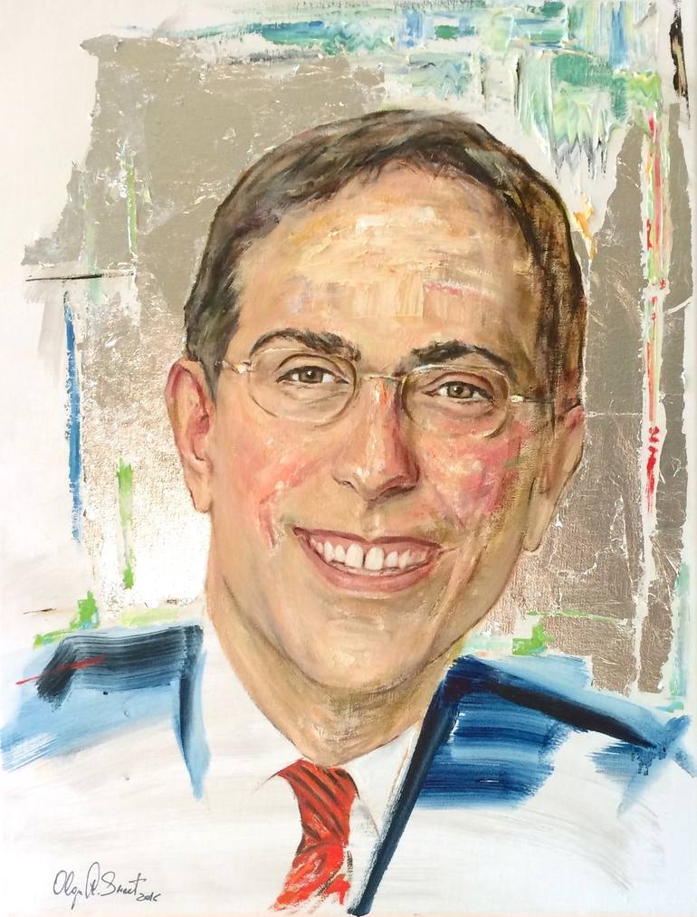 Christopher Eisgruber is the President of Princeton University. The portrait is oil on Belgian linen with touches of silver leaf.