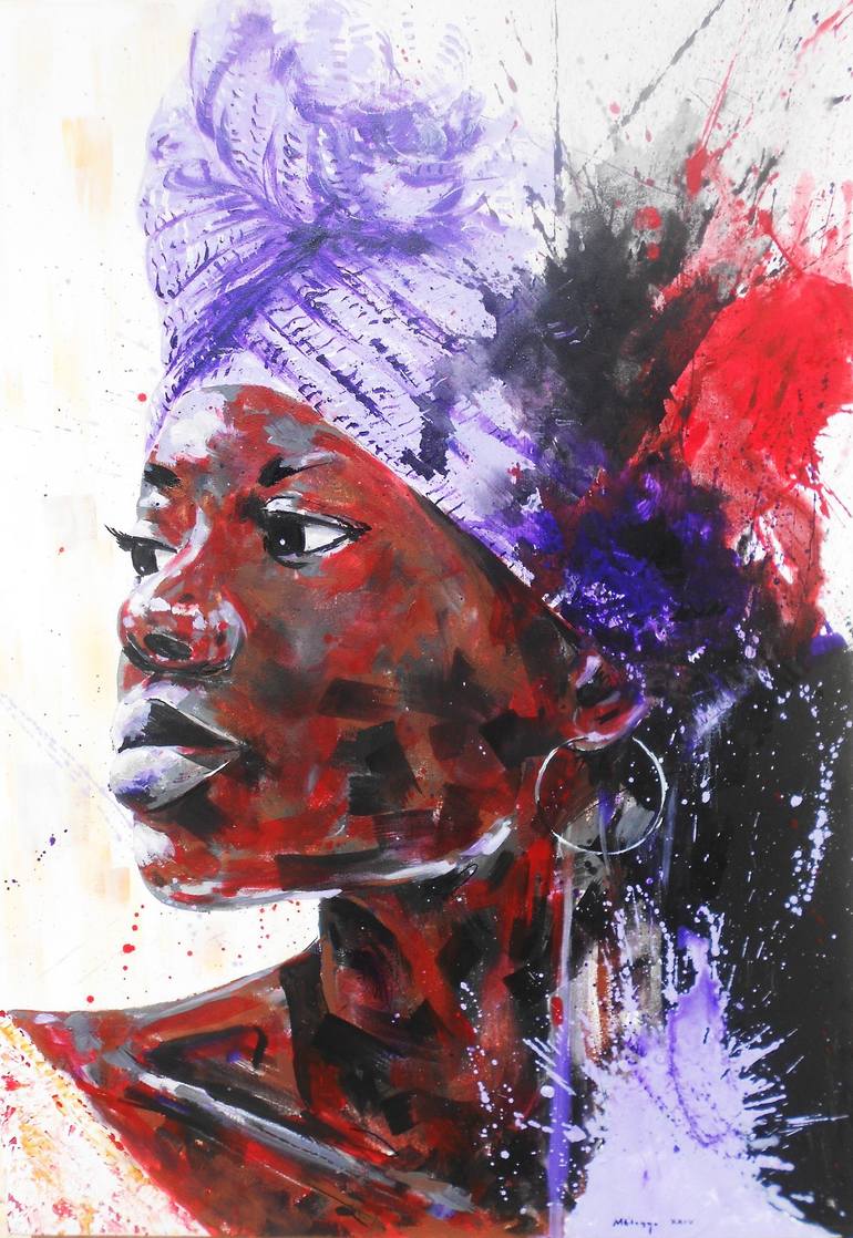 Mbongeni's work is inspired by music and dance, he captures motion, mood and the rhythm to engage the viewer into the beauty of his musical work. He considers his artwork as visual music and expresses his feelings musically on piece of canvas singing his songs with a paintbrush. The body of his work is largely figures, evolving from abstract images to recognisable elements using vibrant colours, texture and 3D effects.