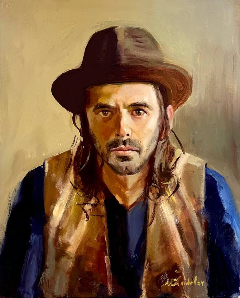 I am very inspired by portraits of people, so I decided to paint this colorful man in a hat. The portrait is painted with oil paints on primed paper.