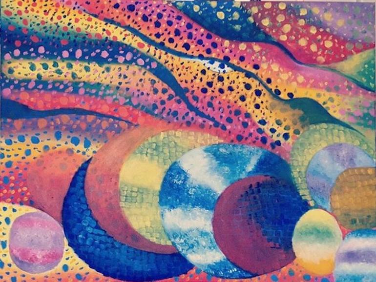 Experimenting with dot painting using high key colours, circles to display positivity