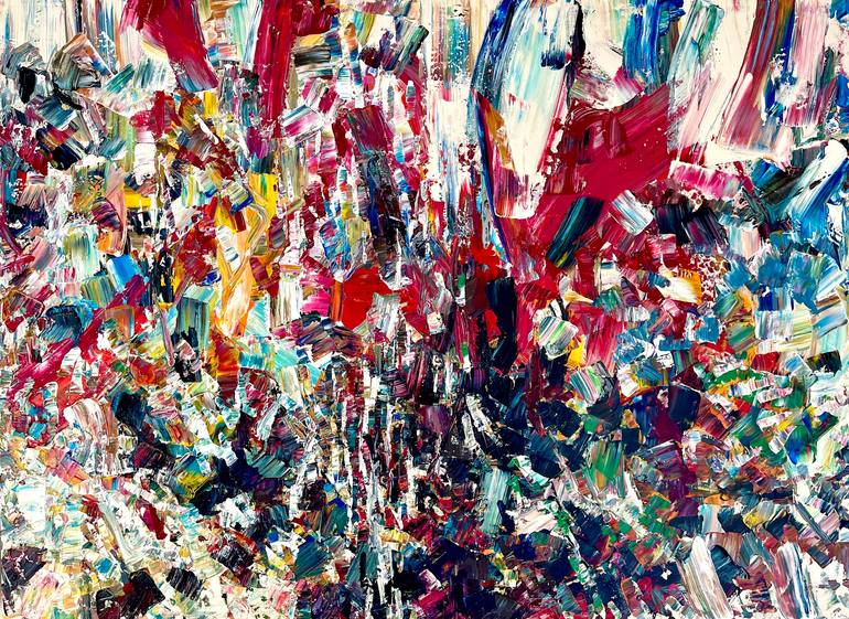 Improvising with free bold strokes, like the action painters of the fifties were enthusiastically doing while exploring new ways to push the boundaries of creativity. Painting with enthusiasm, focus and energy, with a rich distribution of colors and nuances on the palettes, divided between warm and cold colors. The sources of my inspiration were impressionism, lyrical abstraction, abstract expressionism (Riopelle, Pollock, Ferron, de Kooning, etc). I sometimes tend to leave my work unfinished, for it to breathe, and to leave it unresolved, as it often happens with life’s events. It’s important for me to give free reins to my inspiration, to keep the enthusiasm. Thus my work is not formatted, and not done with marketing in mind. My inspiration is free and my artwork might move in different and unpredictable directions. Where does inspiration come from? Is it from me, or is « me » blocking inspiration? How can the canal for creativity be wide open? After spending some time working with technology (3d animation, teaching drawing on computers) I found that technological artworks did not move me. I rediscovered the pleasure of using the body in creating art and the quality of human gestures. I also appreciate the imperfection associated with the human condition as opposed to the always improving perfection of computer work. I enjoy the accidents that happens during creation and that are part of the process. Even thought I long for tranquility and the love of peace found in nature, for some reasons my paintings end up being quite the contrary, with much energy and action in them. It seems that the opposition between what I long for and the experience and pace of the big cities that I lived in is a generator of creativity. I used to sign my paintings in the back but I started to sign, discretely, in the front as well. I mostly use 1 1/2 thick canvas (the sides are not always painted, drops of paint are part of the work), they can be hanged as is and don't need to be framed. I hope my paintings can contribute to add deep positive vibrations and somehow "energize" the viewer.
