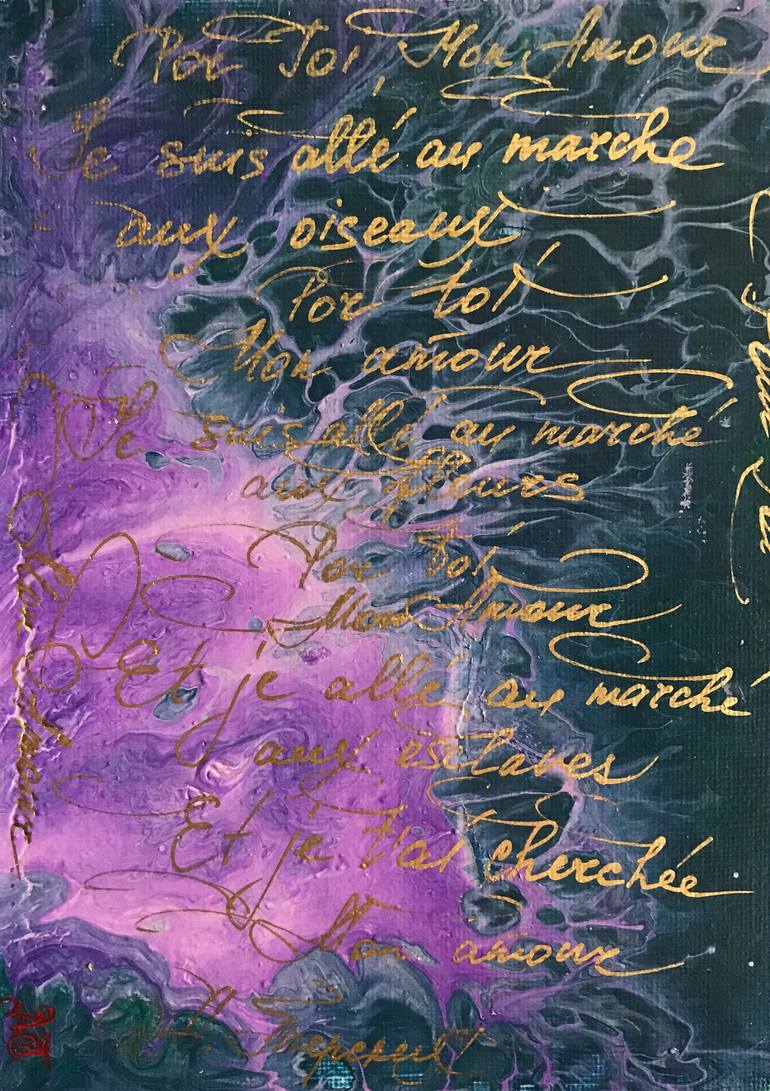 Original acrylic painting on canvas board " Pour toi, mon amour " • Painted in 2020 • Artist - Anastasia Terskih • Comes with a certificate of authenticity • Unframed • Poem by Jacques Prévert "Pour toi, mon amour" Height: 19 cm / 7.4 inches Length: 14 cm / 5.5 inches