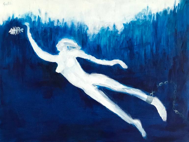 In creating this piece, I poured my emotions into every stroke, capturing the essence of fleeting freedom in a world that often feels confining. The ethereal figure, almost ghost-like, reaches out, striving for something beyond the tangible. The cool, monochromatic blue palette emphasizes a sense of...